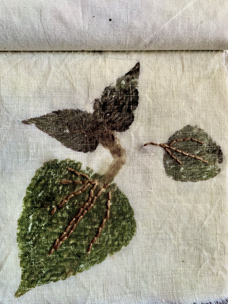Workshop: Lisa will teach you how to create a traditional stamped kerchief using natural floral materials then embellish it with hand stitched embroidery.